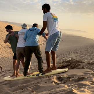 Our surf school is more like a surf family. Two brothers run it. Their mom cooks meals for the surfers. The kindness of the family creates a vibe that brings out the kindness in everyone. We join them for dinner every night. Lots of traditional Moroccan food. One night we had a huge spread of full-body fish and veggies. A spearfishing trip the night prior (by one of the brothers and his friend) had brought 20+ fish back to the surf house!! Every day we have private lessons for hands-on help and so I’m not responsible for family water safety :) Our surf coaches are sweet Moroccan surf gurus. They are so genuinely enthusiastic, encouraging and caring.