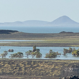 Leaving Tuum we headed further north to Loiyangalani on the shores of Lake Turkana, an inland sea. It’s a windy, gorgeous lake that will never be much of a destination because it’s so darn hard to reach and has almost no infrastructure!! Top middle photo is tribal huts where locals live. Bottom middle photo shows some of the netting they use to protect fish they’ve caught.